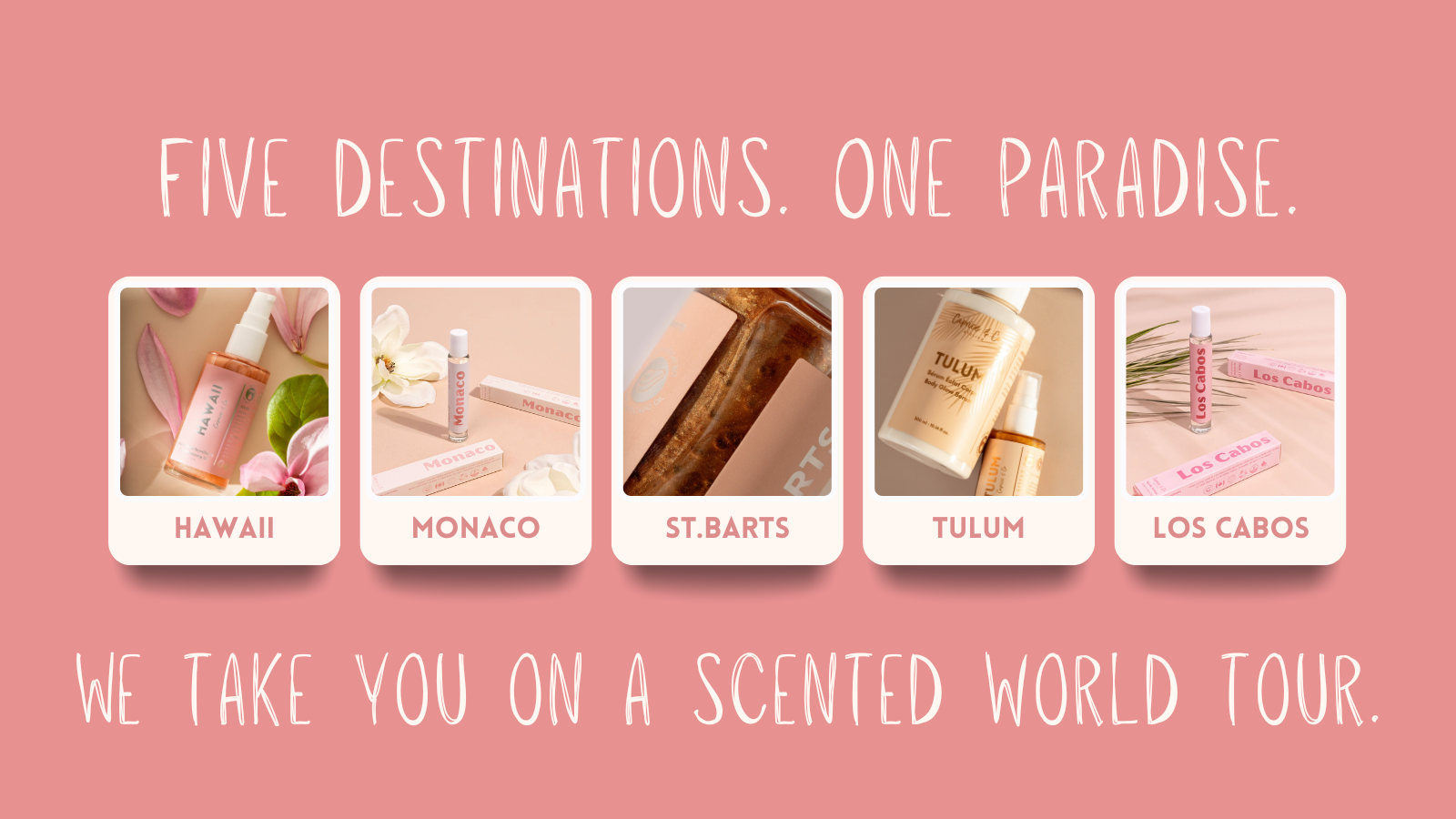 the coastal bloom of Hawaii, the chic elegance of Monaco, the creamy warmth of Tulum, the radiant sweetness of St. Barts, and the golden allure of Los Cabos.